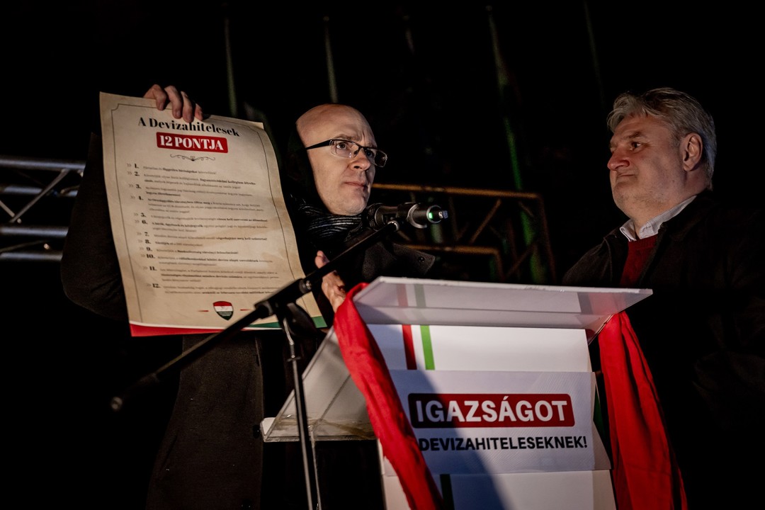 Z. Kárpát Dániel felidézte, először 2010-ben járt jogsegélyezni kilakoltatásra, majd ugyanezt megtette a csapatával további ötvenhat alkalommal, de azt szeretné, hogy ilyen többé ne legyen, hogy megszűnjön a „forintosított rémálom”. Élesen kritizálta a kormányzatot, amiért nem vesz tudomást arról, hogy továbbra is vannak devizakárosultak. Pedig ők léteznek, és