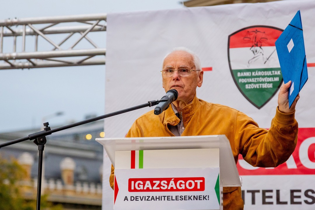 A Bátor Program Egyesült egyik vezetője, Ölveczky István ügyvéd beszédében azt mondta, hogy a devizások saját ügyükben megteremtik a demokráciát, abban ő biztos.
