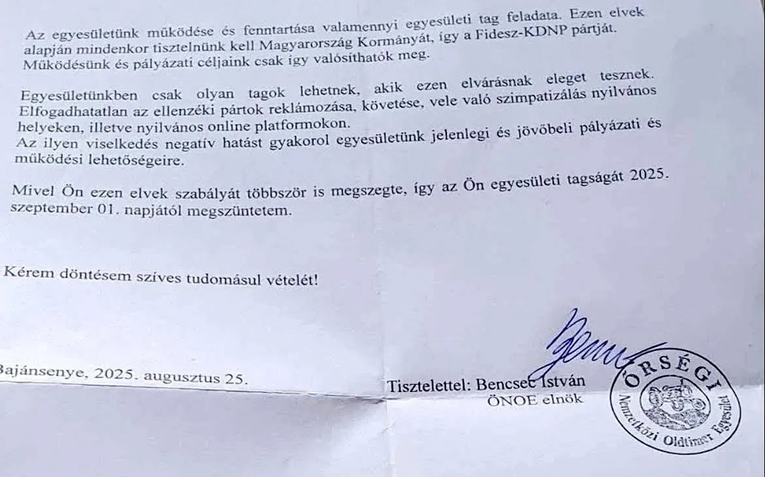 Vincze Katalinékat kizárta az egyesületből az Őrségi Nemzetközi Oldtimer Egyesület elnöke, Bencsec István, a tájékoztató levél tanúsága szerint azért, mert